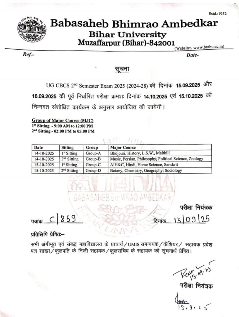BRABU UG 2nd Semester Exam Revised Routine 2025